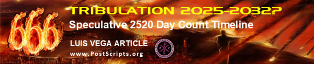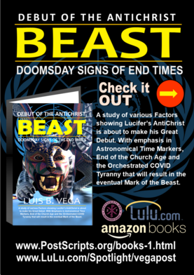 Welcome. My Name is Luis B. Vega. I am a Political Scientist, a Citizen Journalist, Graphic Artist, Amateur Astronomer and a Writer. This Site is dedicated to the Study of End Times by way of Articles, Chart Illustrations, Posters, Publications, Bible Codes, etc. My Research is from a Biblical World View and Interpretation.